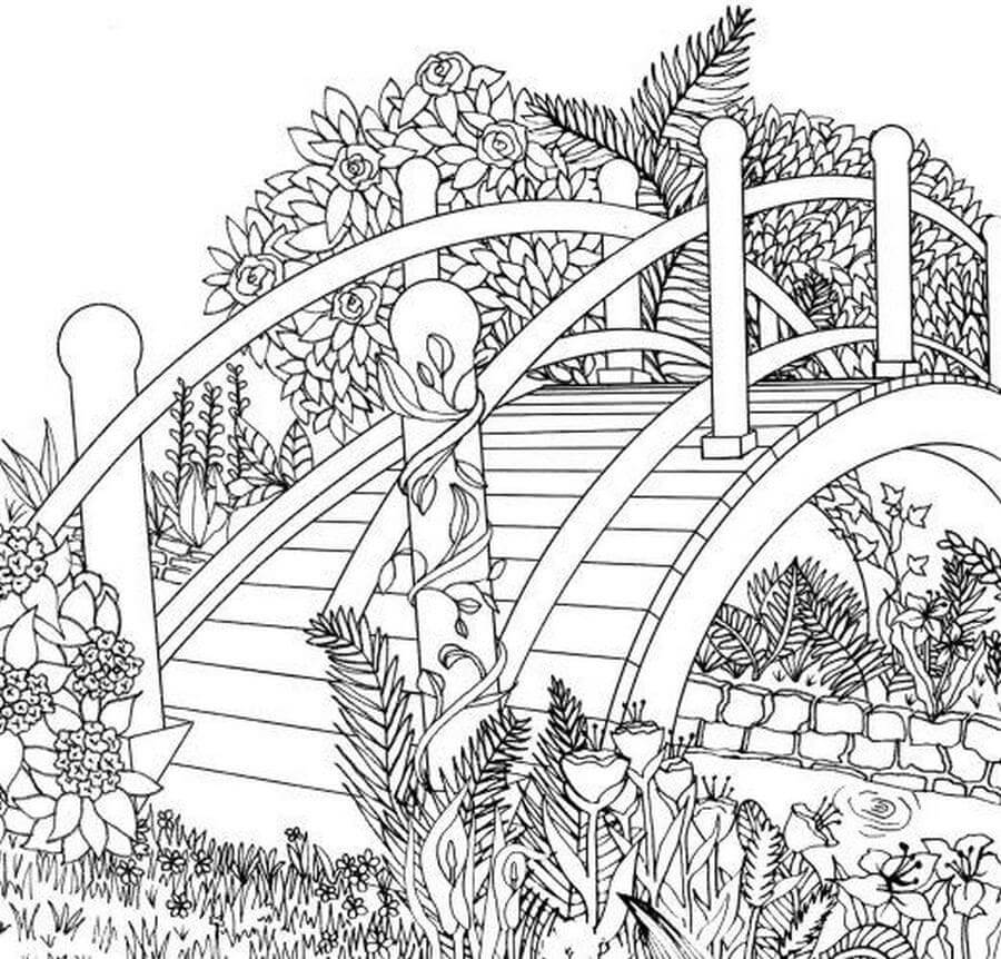 Jembatan Dengan Daun Dan Bunga